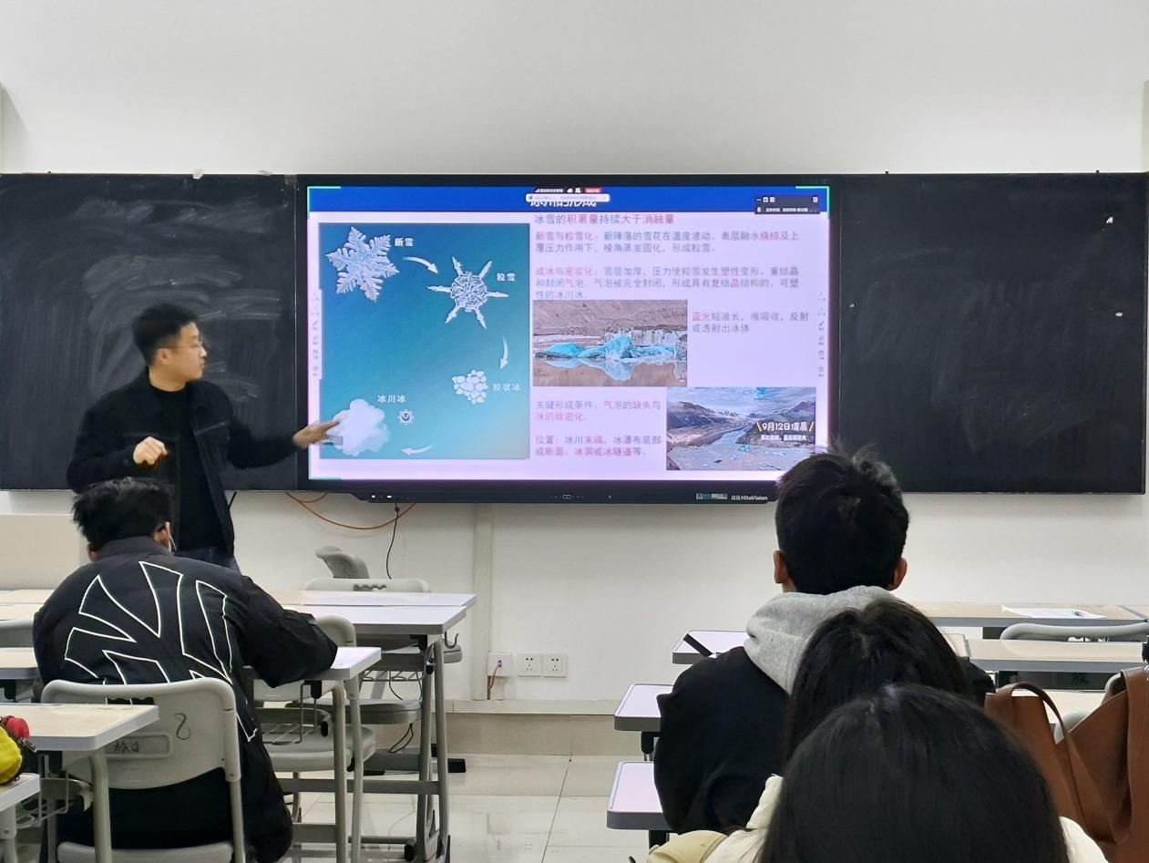 张宏杰作了题为《喀喇昆仑地区小冰期冰川和气候重建》的学术报告。介绍了全球冰川变化的特殊案例——"喀喇昆仑异常",为系统研究这一现象,采用区域尺度的系统性研究方法,通过解译高分辨率遥感影像中的冰碛垄等地貌证据,结合冰川流动模型,对全区小冰期冰川开展三维重建,研究结果为理解这一独特冰川现象的长期演化特征提供了新的科学依据。