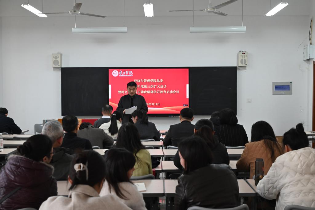 为深入学习贯彻党中央关于开展树立和践行正确政绩观学习教育的决策部署,全面落实学校党委工作要求,3月11日下午,经济与管理学院在薛城校区豁然楼A317召开党委扩大会议,部署启动树立和践行正确政绩观学习教育。学院党委委员及全体党员参加会议,院党委书记徐海波作动员讲话。