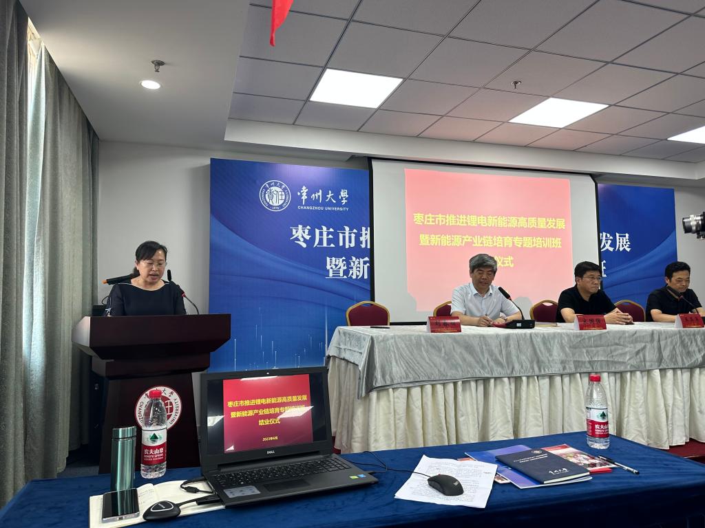 6月4日至10日,“枣庄市推进锂电新能源产业高质量发展暨新能源产业链培育专题培训班”在常州大学举办,我校应邀参加培训班。受学校委托,化学化工与材料科学学院院长刘春丽参加培训并担任培训班班长。