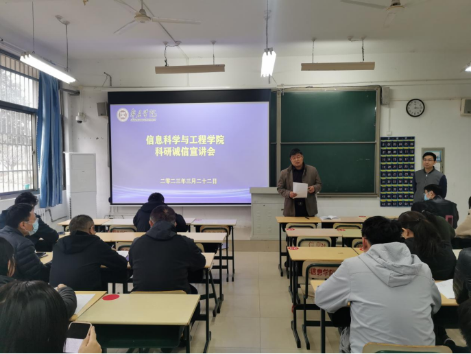 3月22日下午,信息科学与工程学院在理工楼2120召开科研诚信宣讲会,会议特邀科技处副处长刘建波教授进行宣讲。学院相关领导、全体教师参加宣讲会,院党总支书记姬广华主持会议。