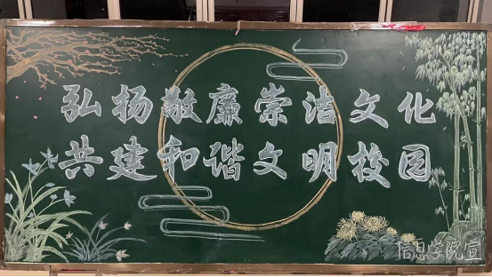 信息科学与工程学院各班级召开了“廉洁修身,从我做起”廉政主题班会,将廉洁文化建设与学风、班风、舍风建设有机结合,传播廉洁修身、诚实守信的文明理念。活动中同学们共同讨论何为廉洁修身,如何做到廉洁修身;学院学生会美工部积极配合学院工作,绘画了“弘扬敬廉崇洁文化,共建和谐文明校园”廉政文化板报,绘画期间各成员认真专注,互相配合,最终呈现出了精美的黑板报。