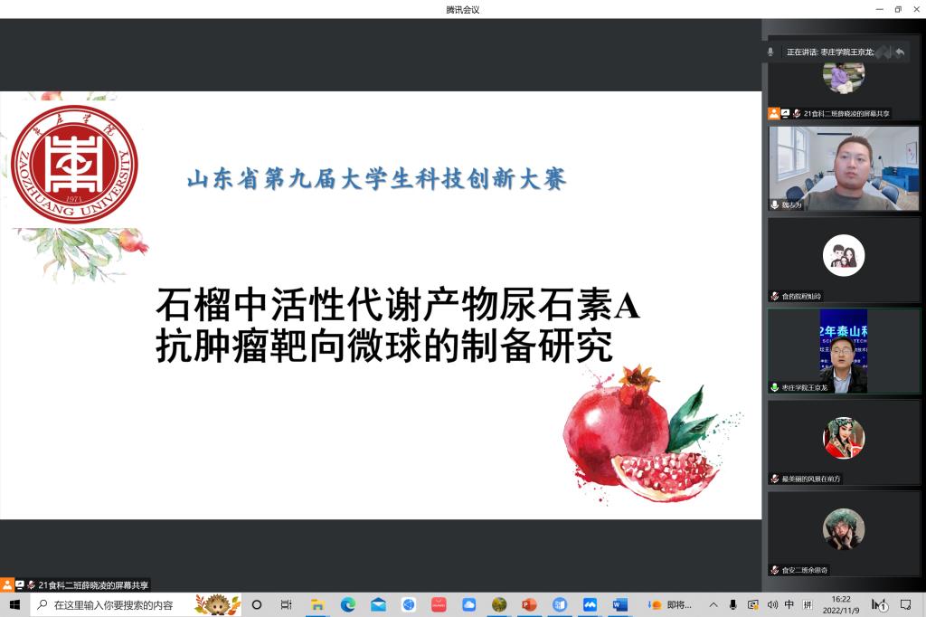 近日,按照学校《关于举办DB中国旗舰官方网站第九届大学生科技创新大赛的通知》要求,食品科学与制药工程学院线上组织了院级选拔赛,鼓励支持大学生开展科技创新活动,展示大学生科技创新成果,培养大学生直面问题、解决问题的本领,培养创新创业应用型人才。