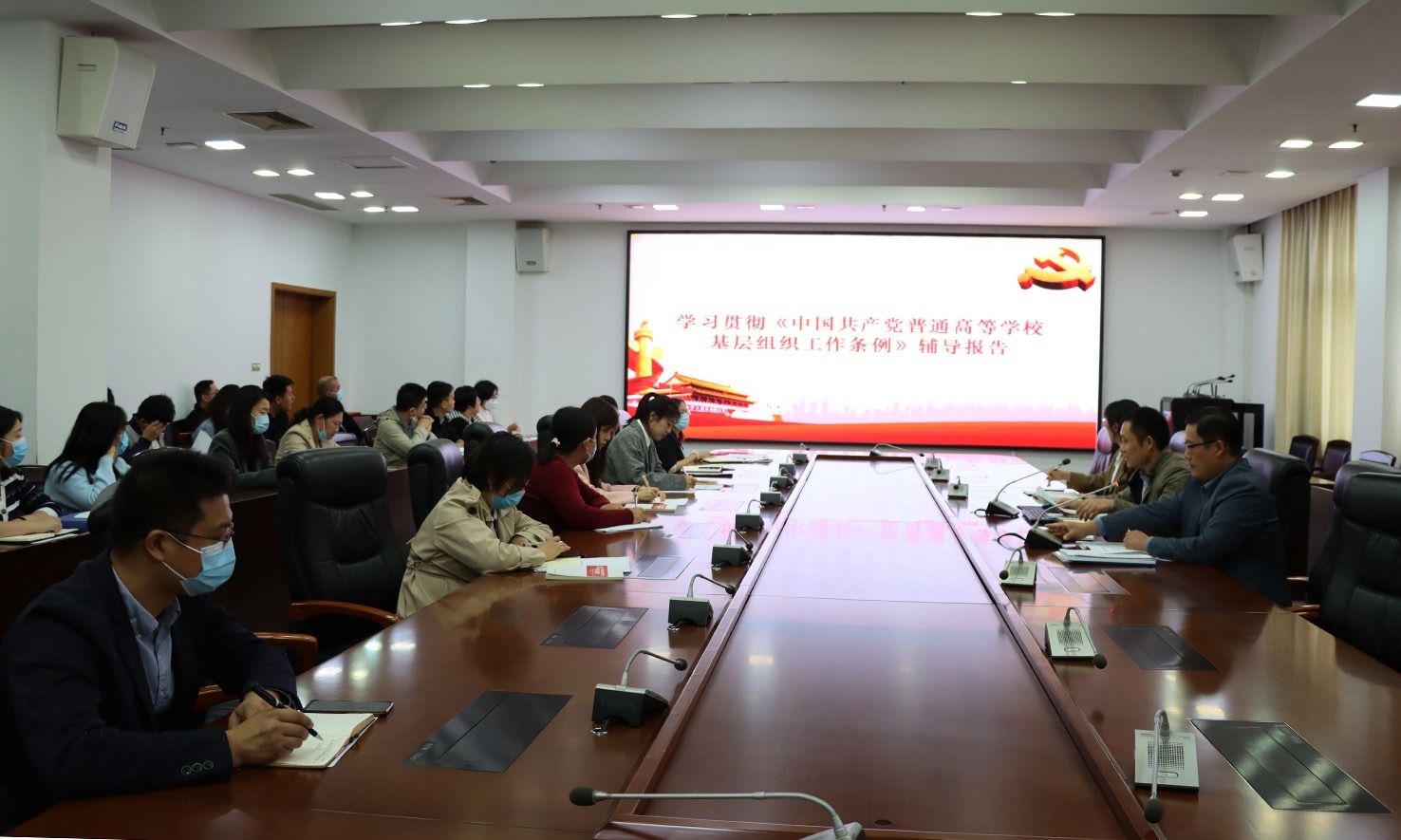 仝锡文带领大家集体学习了《中国共产党普通高等学校基层组织工作条例》,并就相关内容作了辅导报告。