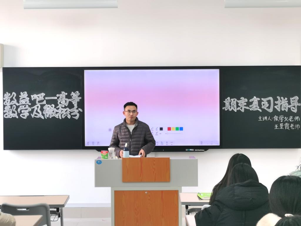 临近期末考试,为指导学生掌握复习重点,12月22日,经济与管理学院在豁然楼A317教室进行高等数学及微积分期末复习指导,经济与管理学院教师侯学义、王景霞主讲,2021级部分学生参加辅导。