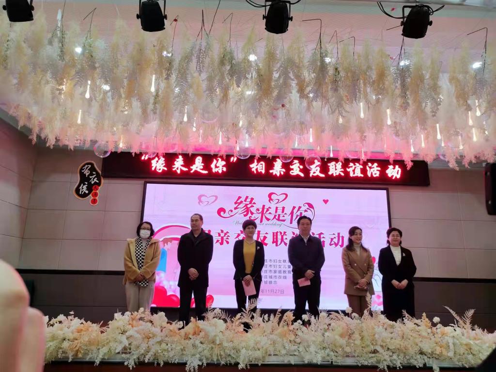 11月27日,由市妇联主办、枣庄市妇女儿童活动中心承办的“缘来是你”相亲交友联谊活动在枣庄市布衣侯大酒店多功能厅举行。市妇联、市民政局、枣庄日报社、枣庄电视台有关领导出席活动。我校妇委会通过前期宣传,组织自愿报名的十余名单身教师参加了活动。