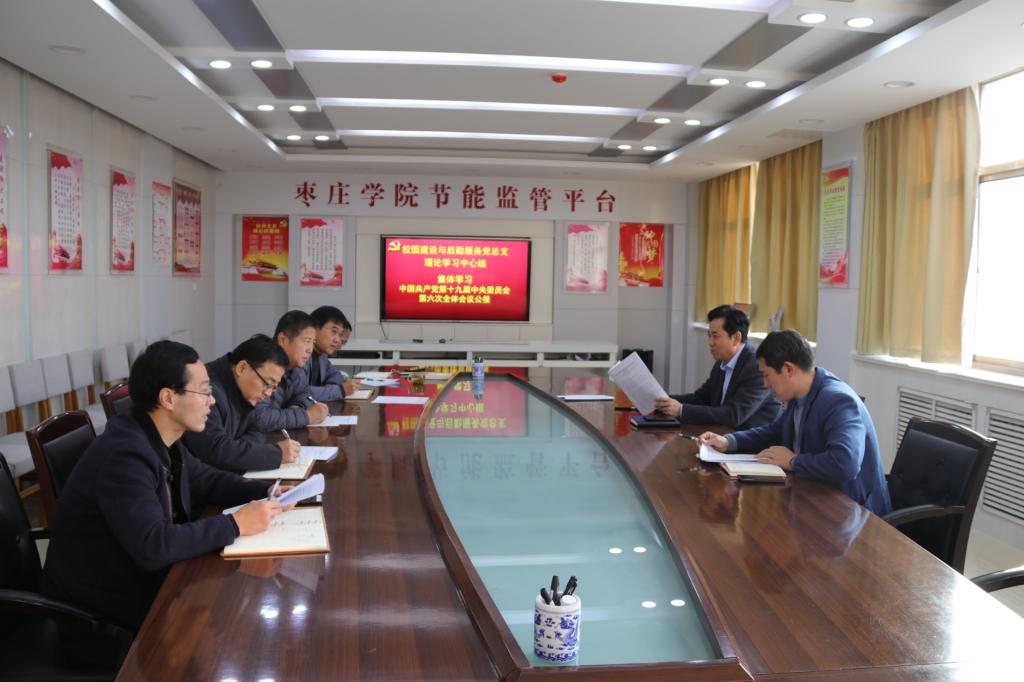 11月18日上午,校园建设与后勤服务党总支理论学习中心组在后勤楼三楼会议室举行党的十九届六中全会精神专题学习会。党总支书记孙玉祥主持学习,党总支理论中心组全体成员参加学习。