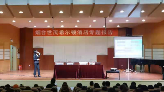 3月31日下午2点,在我校音乐厅举办烟台世茂希尔顿酒店专题报告,学院部分专任教师、2020级和2017级旅游管理、酒店管理的学生聆听了此次报告。报告会上,何芳介绍了酒店的悠久历史,以及希尔顿在中国的发展,并介绍了目前招聘岗位信息。刘飞龙分享自己在酒店行业的经历,鼓励学生积极投身酒店行业,实现人生价值。