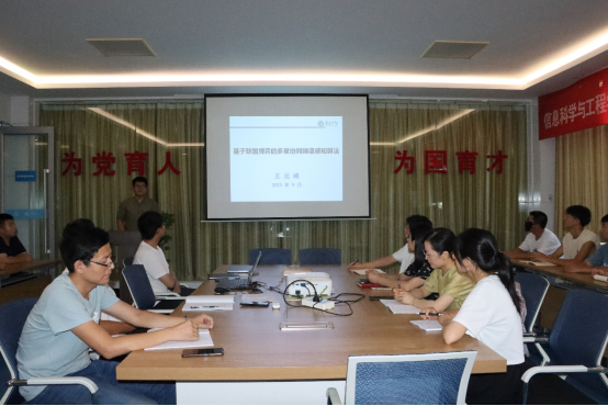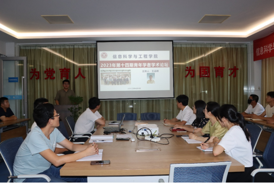 9月6日下午,信息科学与工程学院在墨子楼二楼会议室举办2023年第十四期青年学者学术论坛,学院科研团队教师和科教融合优秀本科生“三进”提升计划学生代表参加学术论坛,信息网络科研创新团队负责人王运峰博士主持学术论坛。