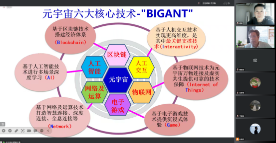 闫昕在主持时指出,全体师生要及时了解元宇宙最新进展,把握元宇宙发展脉搏,紧跟元宇宙发展趋势,充分发挥专业优势,积极投身于元宇宙发展建设。