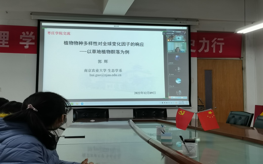 12月9日下午,旅游与资源环境学院邀请南京农业大学生态学系主任、博士生导师郭辉教授通过线上会议作了题为《植物物种多样性对全球变化的响应:以草地植物群落为例》的学术报告。院长王满堂主持报告,学院全体专任教师及地理科学专业学生在线聆听报告。