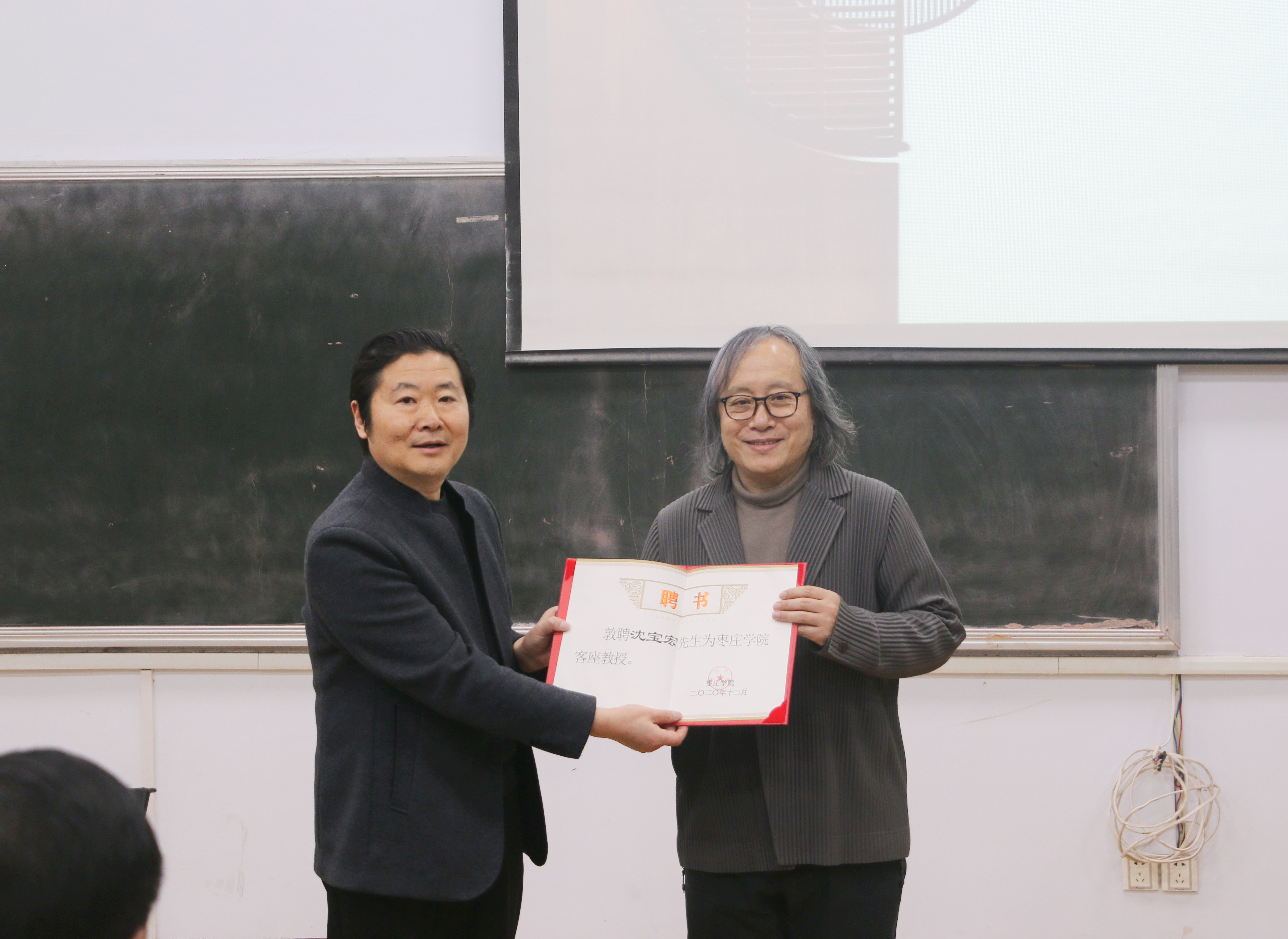学术报告开始前,李鲁祥院长代表学校向沈宝宏教授颁发客座教授聘书。
