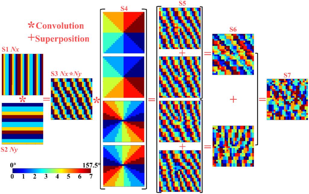 广义编码序列之间的卷积和叠加有助于轨道角动量(OAM)涡旋光束的精准调控,以及精确操纵光子传播特性。这一现象显著提升通信容量与成像分辨率,展现出在智能通信、太赫兹成像等领域具有广泛的应用潜力。二氧化钒(VO2),作为一种温控相控材料,有效控制编码超表面透射-反射模式的动态切换,实现涡旋光束在0到360°范围内的连续精准调控。