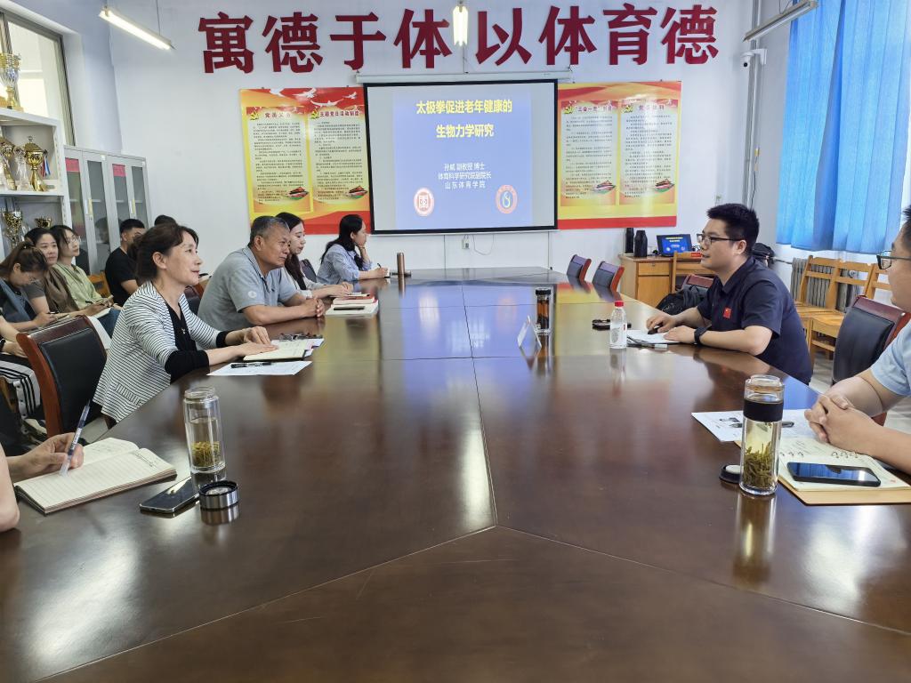 孙威博士以《太极拳促进老年健康的生物力学研究》为题,结合自身研究成果,深入剖析了太极拳在改善老年人平衡能力、肌肉力量及关节稳定性等方面的生物力学机制。他通过实验数据和案例分析,阐述了太极拳运动对延缓衰老、预防跌倒及促进身心健康的重要作用,为体育学院教师在运动健康领域的研究提供了新思路。