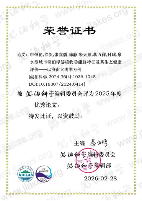 此次两篇论文同时获评《湖泊科学》年度优秀论文,是对我校流域生态学团队科研水平与成果质量的直接认可。该团队长期聚焦水生生物与流域生态学研究,产出了一系列具有创新性和应用价值的成果,有效提升了我校在相关领域的学术声誉。