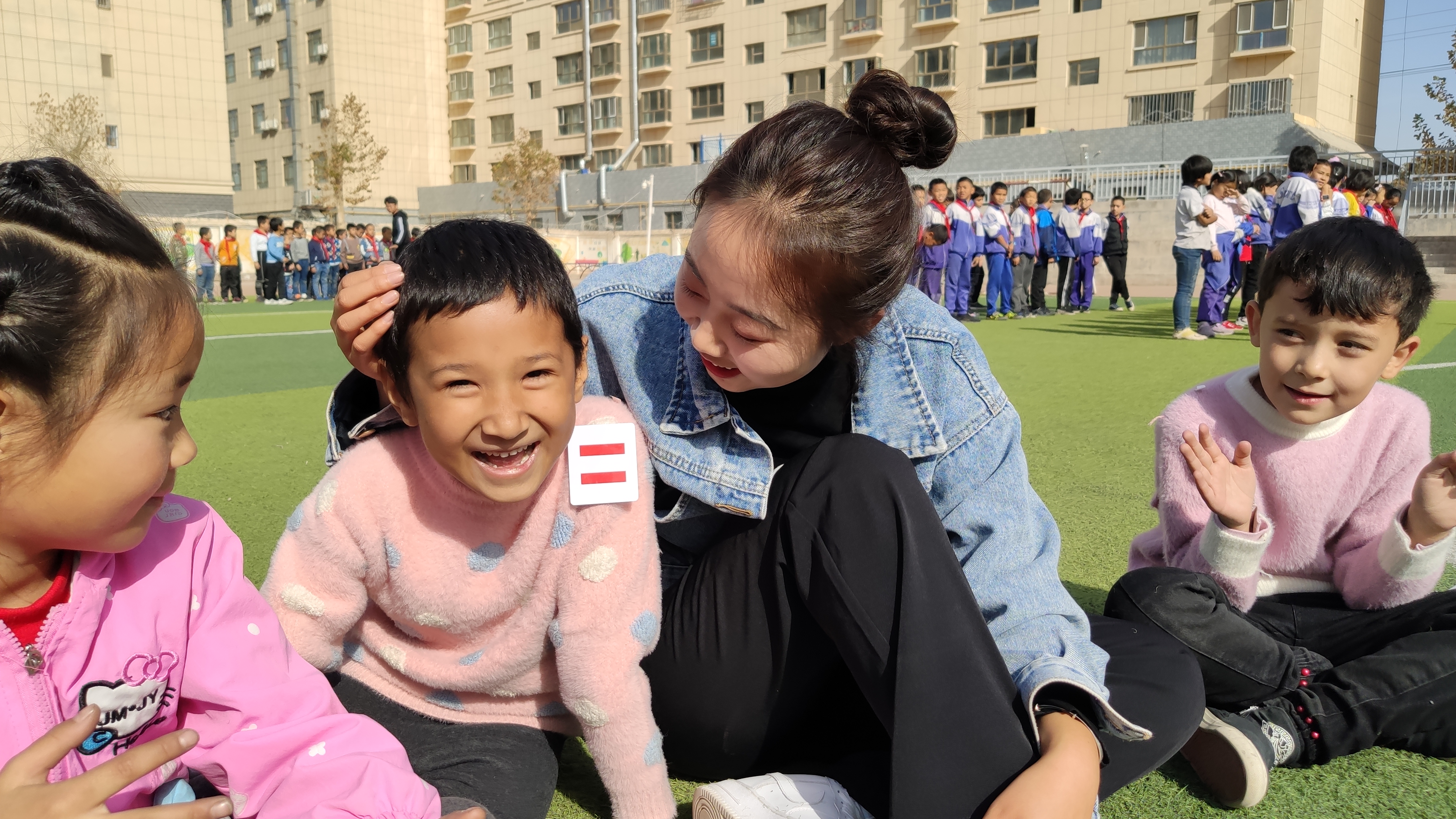 闲暇的时候,去操场看孩子们上体育课,抓拍他们的笑容,每每心情不好的时候,看着这些如花般的模样,天真烂漫,便如柳暗花明,自己的嘴角也瞬间微微上扬起来。他们抱住我的时候,我觉得我是这个世界上最幸福的老师,最幸福的人。他们的笑是我见过这世上最美的笑容,沉醉在笑声的海洋里,现代人的“sang”文化消失的一干二净,留下的只有快乐。