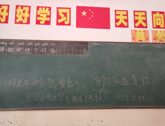 (转学的学生在黑板给我的留言)