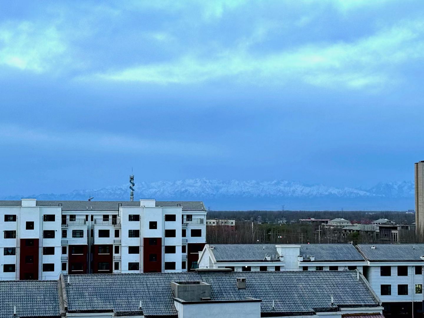 雪山,蓝天,昨夜下的雨好像把天空中的风沙都冲落,天露出了本来的颜色,湛蓝,分外好看。一路的惊呼声,红绿灯间抑制不住往上抬的眼神,都映照着这美丽的天空。风沙没了,可见度高了,一眼仿佛能万里,远处的雪山清晰可见,山脉的纹路映在眼底,每次都在感叹造物者的神奇。
