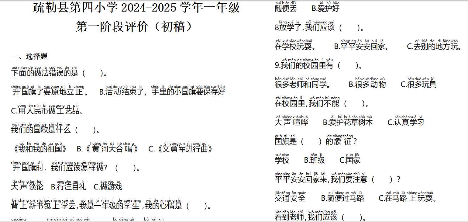 然而,挑战如影随形,对于一年级的孩子来说,他们的认知能力和语言理解能力尚在发展之中。我思考着如何在保证试卷内容全面覆盖知识点的同时,又能让题目难易适中,既不会让他们感到挫败,又能激发他们的探索欲,为了找寻这个“平衡点”,我反复斟酌每一个问题的表述方式,尽量使用简单明了的语言,避免专业术语的堆砌,并设置了不同的难易程度的题型,旨在让每个孩子都能在试卷上找到属于自己的舞台,展现自己的学习成果。在题海的筛选中,我愈发深刻地意识到,教育之本,不仅在于知识的灌输,更在于心灵的启迪与价值观的塑造。于是,我力求每一道题目都能成为连接学生生活与知识的桥梁,让学习成为一场奇妙的探索,力争让孩子们在探索中自然而然地领悟到知识的价值与力量。