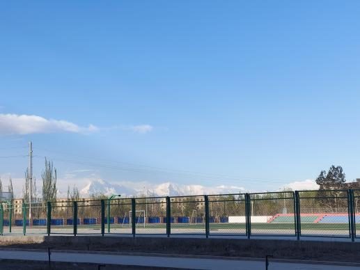 在疏勒,天空如洗、阳光明媚的时候,能从学校的操场看到暮春雪山。
