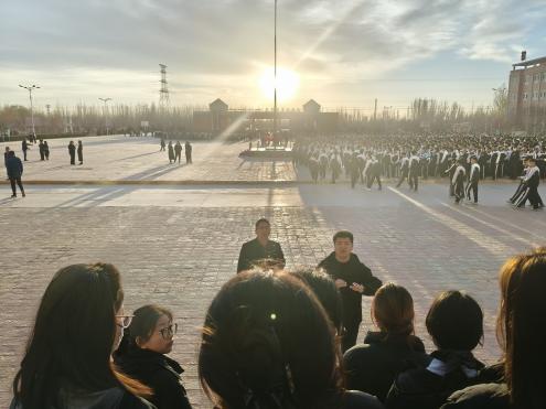 操场外的雪山成了天然的背景板,它亘古不变的姿态提醒着每个高中生:知识的积累需要像山岳般沉稳的定力。班级后排的古丽举起了手,迪丽努尔老师停下讲解,眉宇间泛起欣慰的笑意。这一刻,书本翻动声、老师们在办公室的交流声、窗外的风声,都化作校园里最动听的乐章。