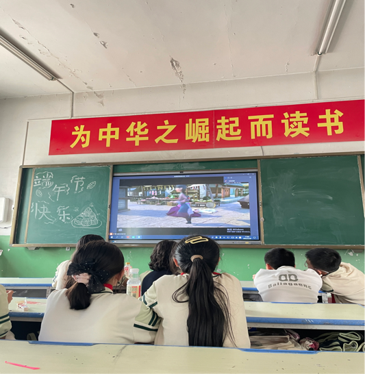 下午,我和全班同学一起观看了电影《哪吒之魔童降世》。我搬来一个凳子,刚坐下,孩子们就热情地邀请我和他们坐在一起。他们纷纷拿出自己的零食与我分享,乃则热还掏出她新买的漂亮发卡,让我挑选。她小心翼翼地将发卡别在我的头上,开心地说:“老师,你戴上真好看!”那一刻,我感觉自己不再是他们的老师,而是他们亲密无间的朋友。我们一起为电影里的精彩情节欢呼,为感人瞬间落泪,这种温暖又美好的时光,我一定会永远铭记。